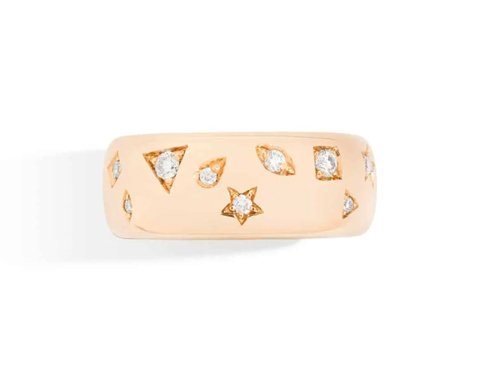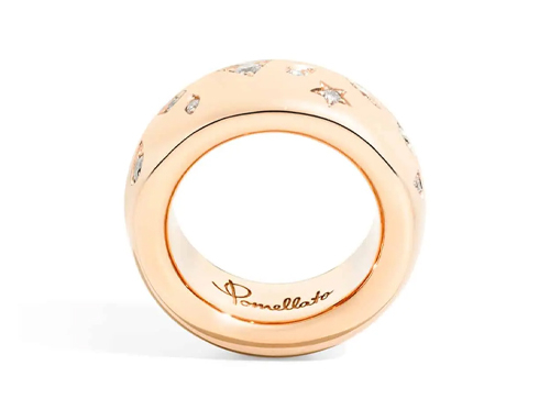 Iconica, дань уважения ювелирному наследию Pomellato, ярко сияет в кольцах из розового золота. Дерзкая, легкая и штабелируемая, эта юбилейная коллекция может быть смешана и подобрана в соответствии с духом Pomellato.