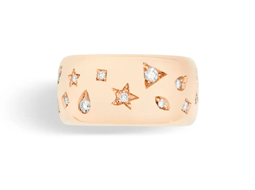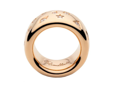 Iconica, дань уважения ювелирному наследию Pomellato, ярко сияет в кольцах из розового золота. Дерзкая, легкая и штабелируемая, эта юбилейная коллекция может быть смешана и подобрана в соответствии с духом Pomellato.