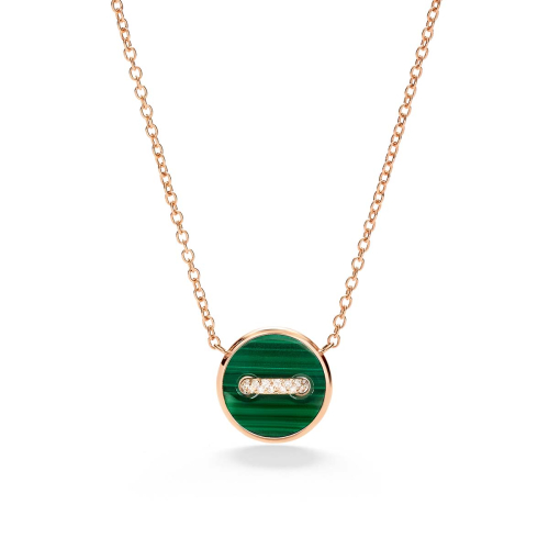 • Ожерелье с подвеской из 18-каратного розового золота с 1 малахитом (≈2,3 карата), 1 белым перламутром (≈1,6 карата) и 14 белыми бриллиантами (≈0,05 карата).