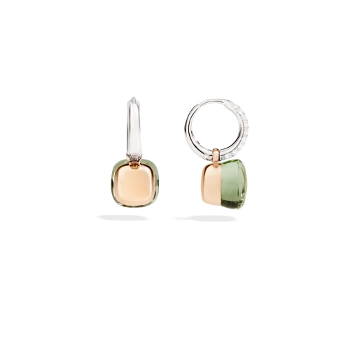 • Серьги из 18-каратного белого и розового золота с 2 празиолитами (≈14 карат) и 56 белыми бриллиантами (≈0,3 карата) на 18-каратном родированном белом золоте.