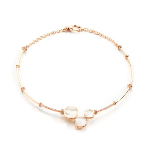 Ожерелье из 18-каратного розового золота с 3 белыми топазами и белым перламутром (≈36,6 карат) и 219 белыми бриллиантами (≈1,9 карат) на 18-каратном розовом золоте с белым родиевым покрытием.