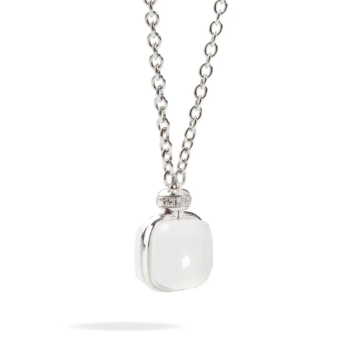 Ожерелье с подвеской из 18-каратного марганцевого белого золота с 1 молочным кварцем (≈5,9 карата) и 8 белыми бриллиантами (≈0,04 карата) на 18-каратном родированном марганцевом белом золоте.