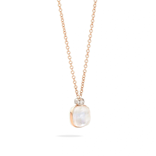 Ожерелье с подвеской из 18-каратного розового и белого золота с 1 белым топазом и белым перламутром (≈11,3 карата) и 8 белыми бриллиантами (≈0,1 карата) на 18-каратном родированном белом золоте