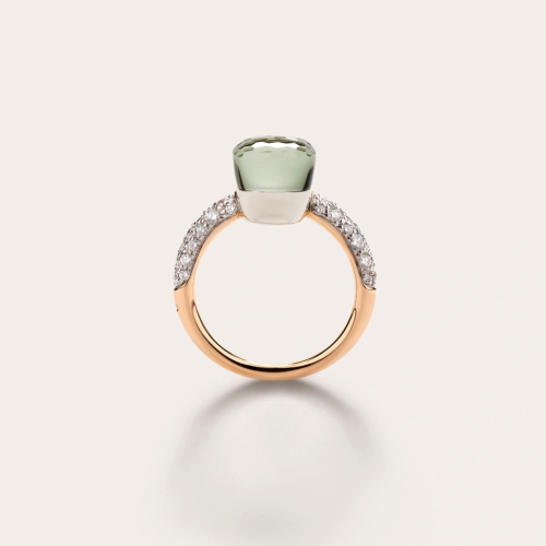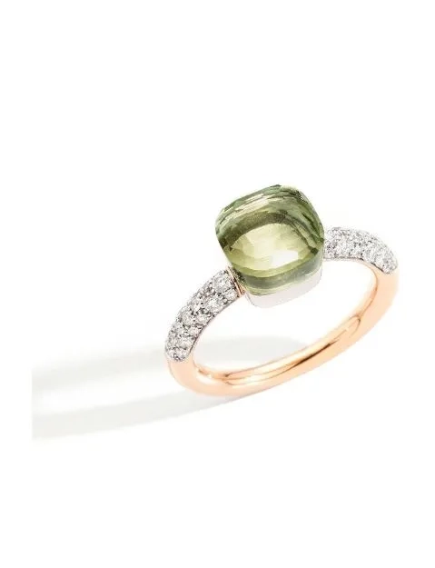 Кольцо из 18-каратного розового и белого золота с 1 празиолитом (≈4,9 кар) и 36 белыми бриллиантами (≈0,4 карата) на 18-каратном розовом золоте с белым родиевым покрытием.