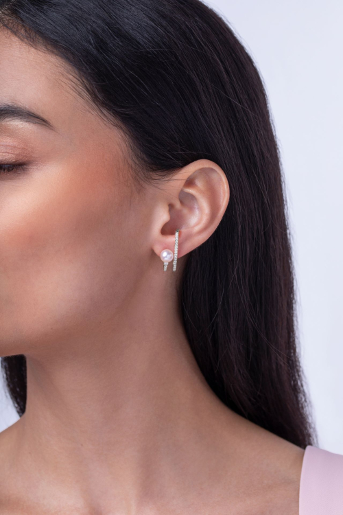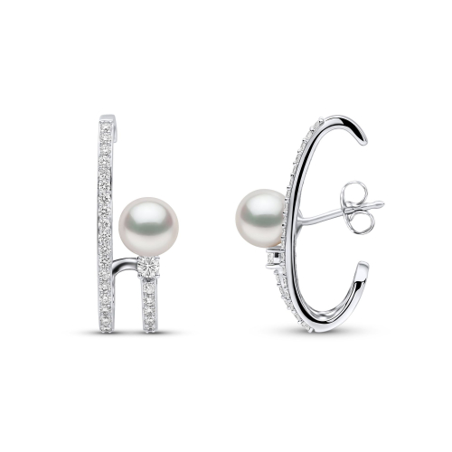 Представляем наши серьги-каффы Baby Glitz Spiral Diamond. Созданные с тщательным вниманием к деталям, эти серьги имеют уникальный дизайн, который сочетает в себе манжету и серьгу. В центре находится блестящая белая японская жемчужина Акойя, оправленная в 18-каратное золото с множеством бриллиантов. Этот отличительный дизайн создает иллюзию двух сережек в одной, олицетворяя
