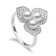 Кольцо лепесток из 18-каратного золота с жемчугом и бриллиантовым цветком