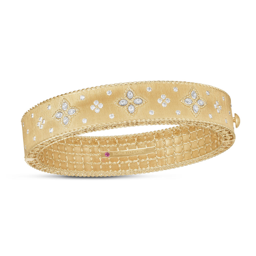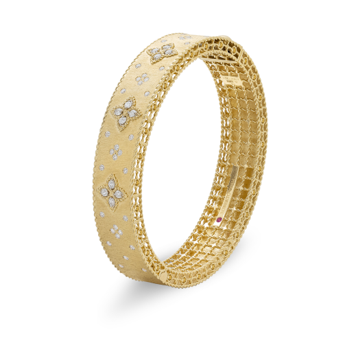 Бриллианты сияют на этом особом браслете от Roberto Coin из золота 18 карат, созданном вручную. Доступен в белом, жёлтом и розовом золоте.