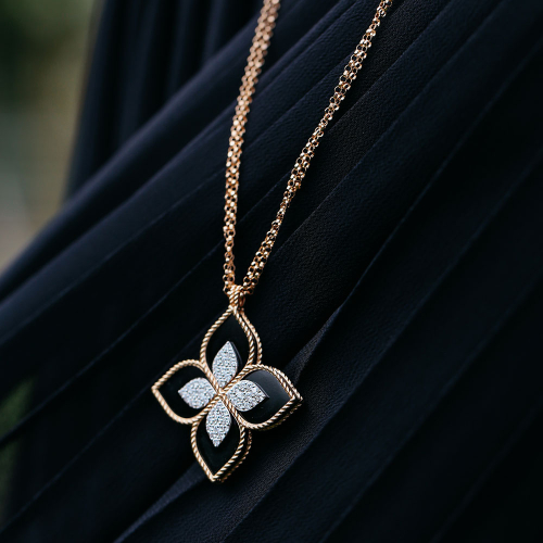 Кулон Princess Flower из розового золота 18 карат с чёрным нефритом и бриллиантами