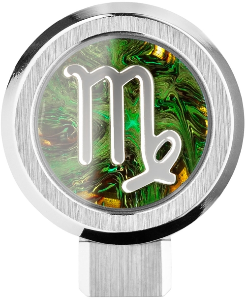 Под сапфировым кристаллом — металлические печатки, символы космической индивидуальности.Дева — символ утончённости и разума. Её гармония и стремление к совершенству отражены в чистых линиях и мягких, нейтральных оттенках.