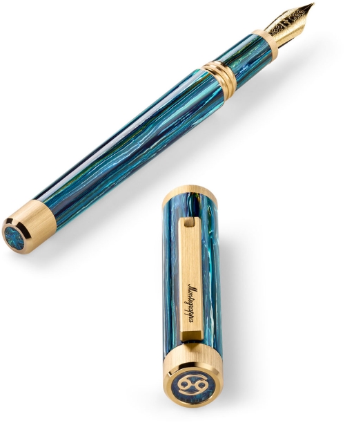 Звёзды сходятся в современном силуэте Montegrappa, где каждый знак зодиака воплощён в цветных нитях смолы и металлических печатках под сапфировым кристаллом.