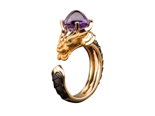 Кольцо GUARDIAN из 18KT желтого золота с бриллиантами, изумрудами и аметистом.