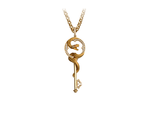 Ожерелье SNAKE KEY SMALL из 18KT желтого золота с бриллиантами и красными сапфирами.