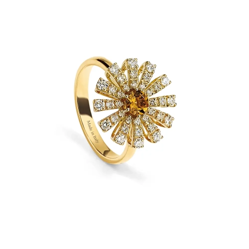 • Кольцо MARGHERITA из 18-КТ желтого золота с бриллиантами и цитрином, 16 мм.