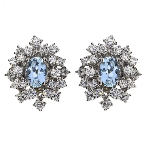 Серьги MIMOSA из 18-КТ белого золота с бриллиантами и аквамаринам.